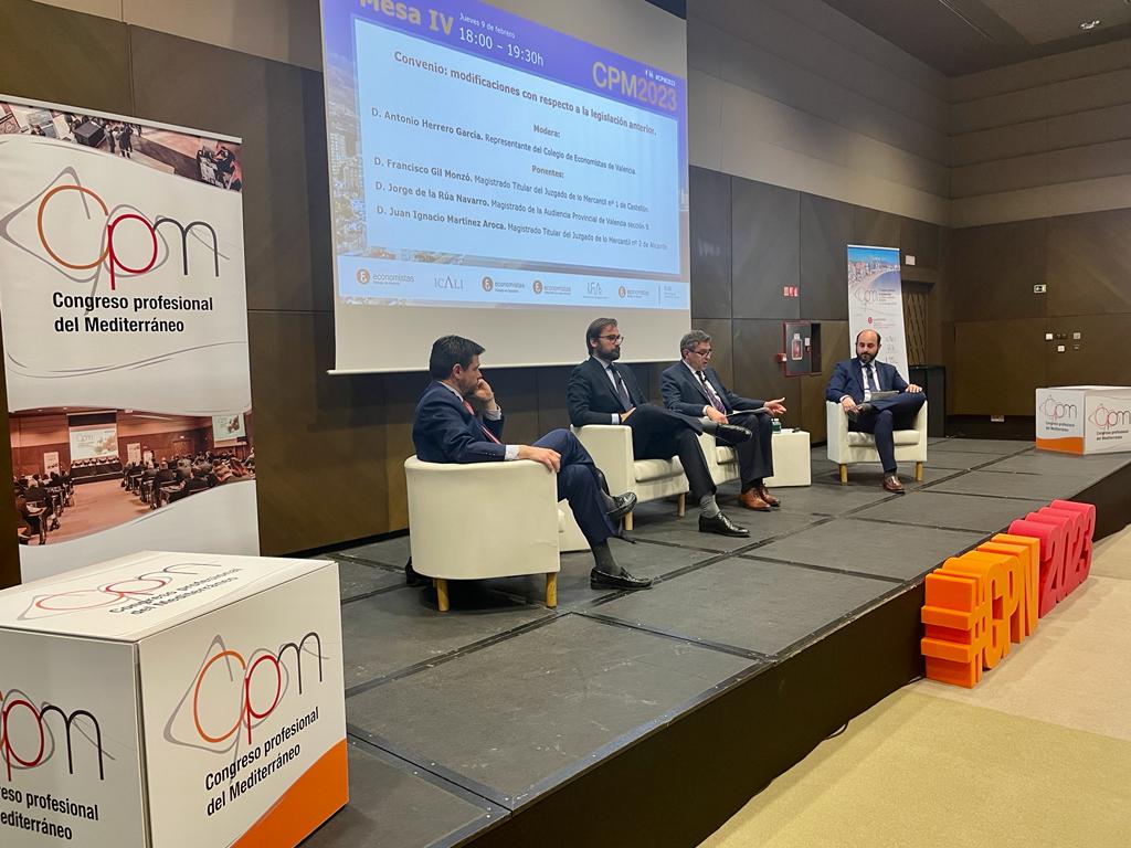 La jornada finalizó con la mesa ‘Convenio: modificaciones con respecto a la legislación anterior’, en la que participaron D. Francisco Gil Monzó, magistrado titular del Juzgado de lo Mercantil nº 1 de Castellón; D. Jorge de la Rúa Navarro, magistrado de la Audiencia Provincial de Valencia sección 9 y D. Juan Ignacio Martínez Aroca, magistrado titular del Juzgado de lo Mercantil nº 2 de Alicante.