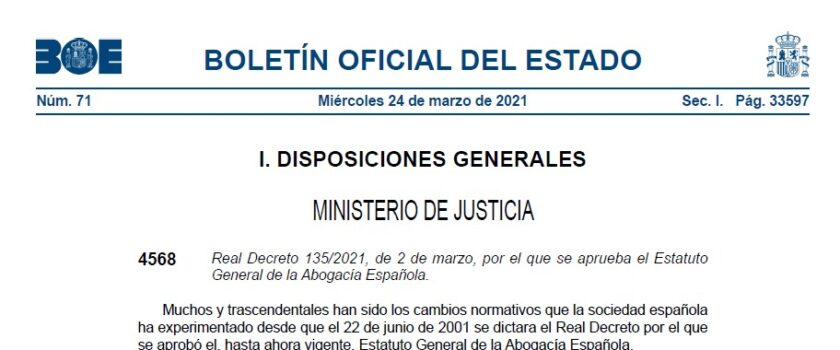 El Consejo de Ministros ha aprobado hoy, 2 de marzo de 2021, el nuevo Estatuto General de la Abogacía Española, que actualiza el hasta ahora en vigor de 2001.